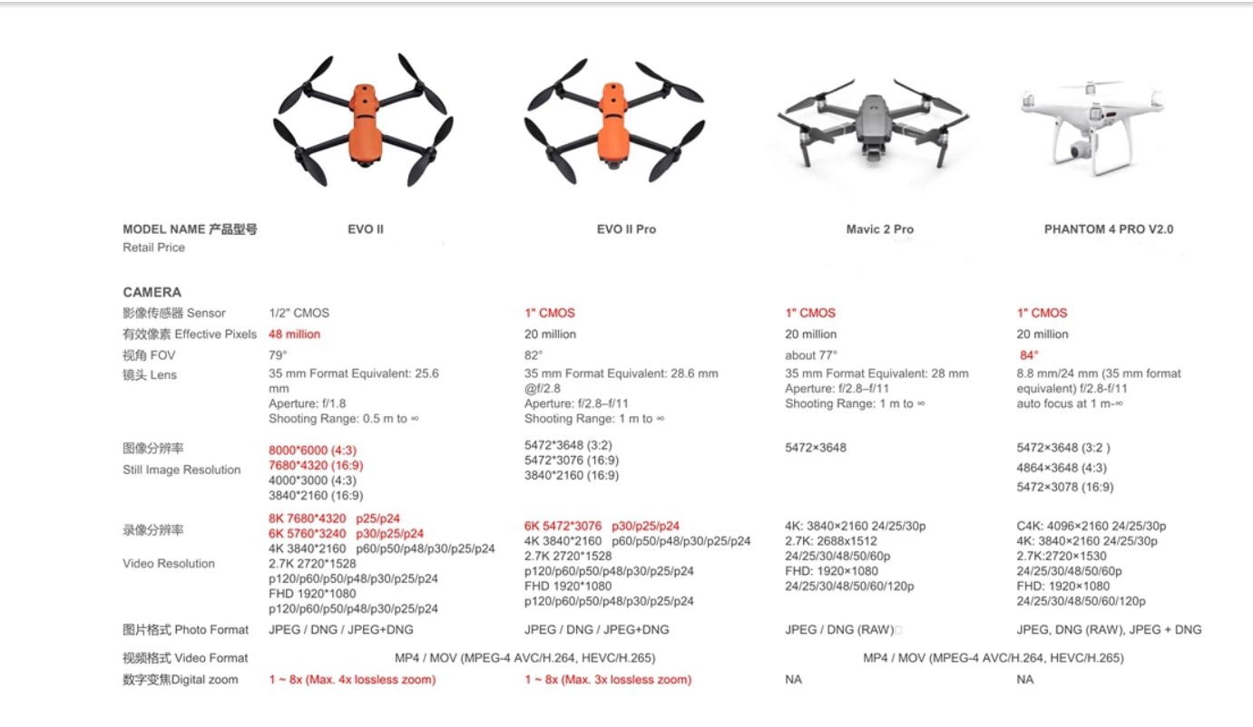 Autel EVO II 8K 48MP/ Evo II Pro 6k con sensore da 1" 9km di range e 40 Min di autonomia e 12 sensori anticollisione omnidirezionali doppio sistema GPS ridondante e memoria interna 8gb di backup