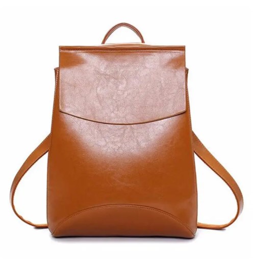 Women Oil PU Leather Simple Big Capacity Simple Backpack Shoulders Bag - Light Brown, Wine Red or Black
